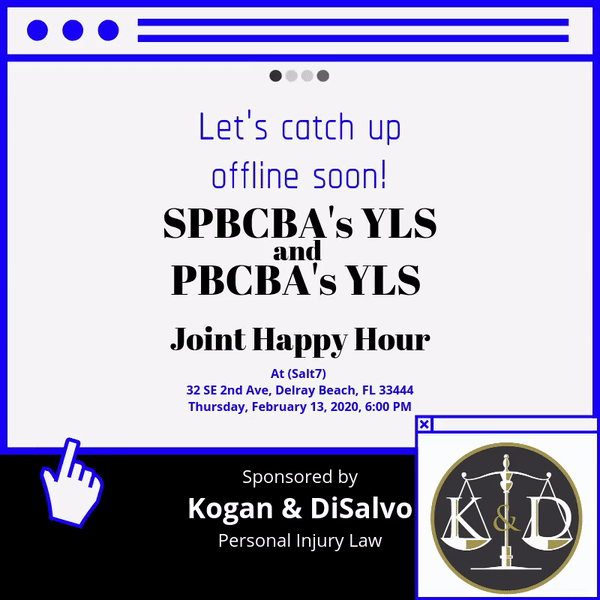 We are grateful for the South Palm Beach County Bar Association (SPCCBA) and all their hard work in organizing the SPBCBA’s YLS and PBCBA’s YLS Joint Happy Hour at SALT7 on February 13, 2020. This year’s Happy Hour was sponsored by personal injury lawyers Kogan & DiSalvo.